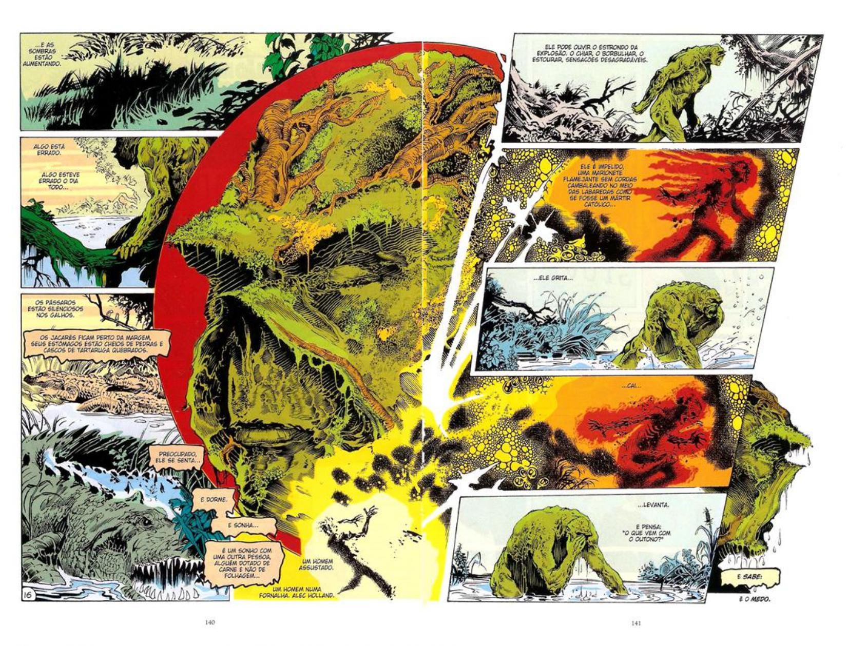 Quadrinhos não são textos ilustrados. A nona arte é a junção de narrativa visual, com a parte escrita, dos diálogos, cores, balões e narrações, formando uma unidade. E nesse aspecto, A Saga do Monstro do Pântano também consegue ser impecável e revolucionária.